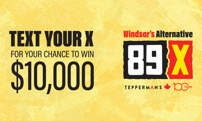 TEXT YOUR X. WIN 10K. Only on Windsor’s Alternative, 89X